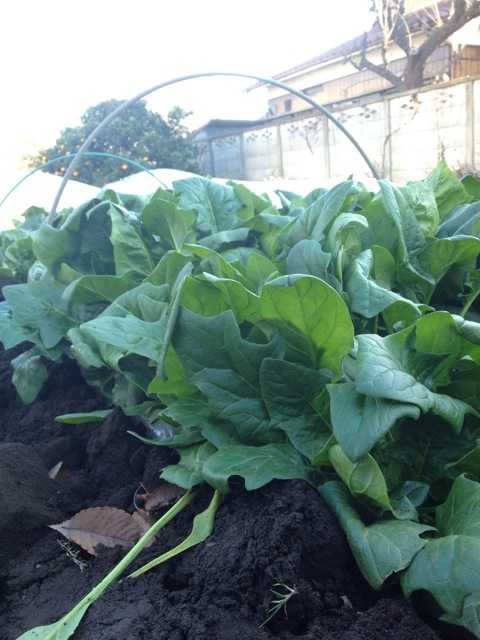 外で作られたほうれん草は、元気にこんもりと葉っぱを外に大きく広げて、おひたしにも、サラダにも、スープにもなにに使っても美味しそうです。